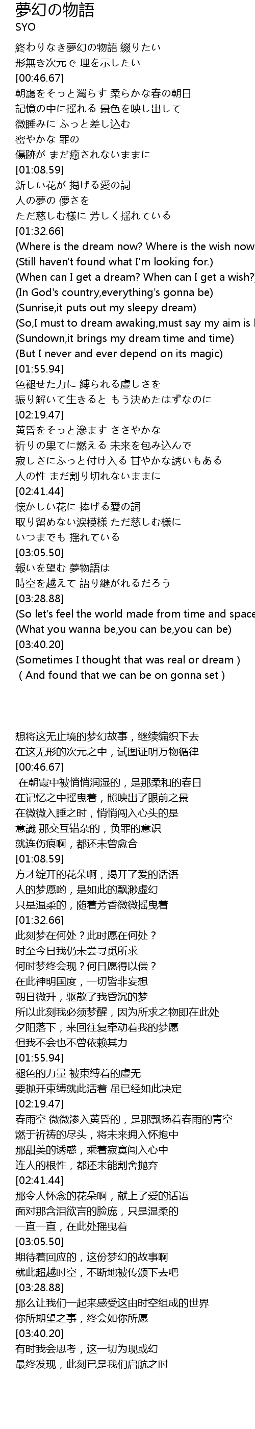 | [00:24.58] | 終わりなき夢幻の物語 綴りたい |