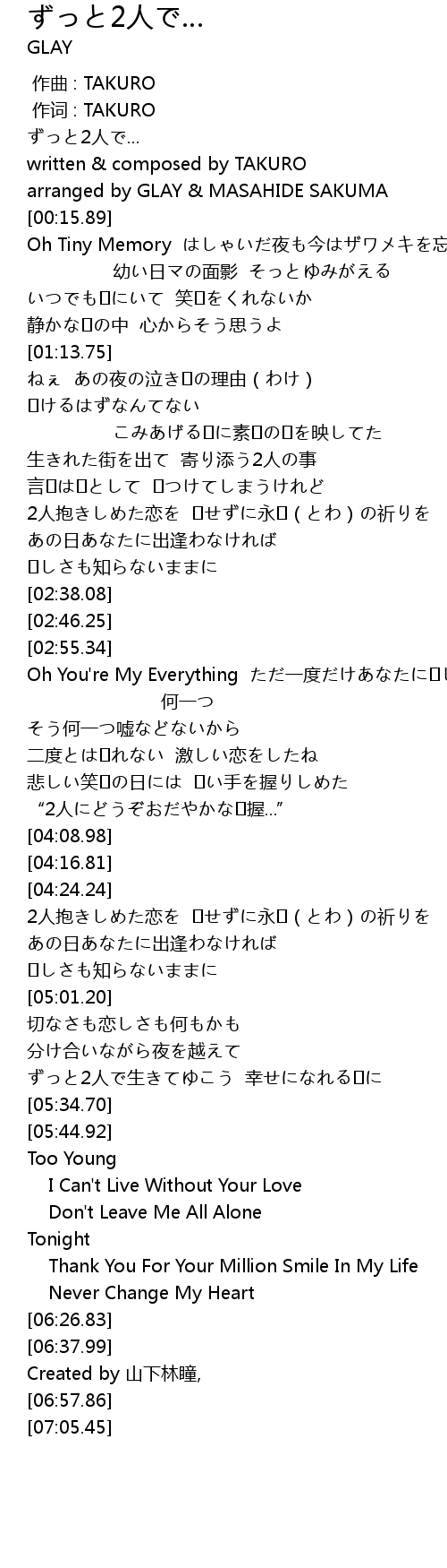 | [00:11.89] | arranged by GLAY & MASAHIDE SAKUMA |