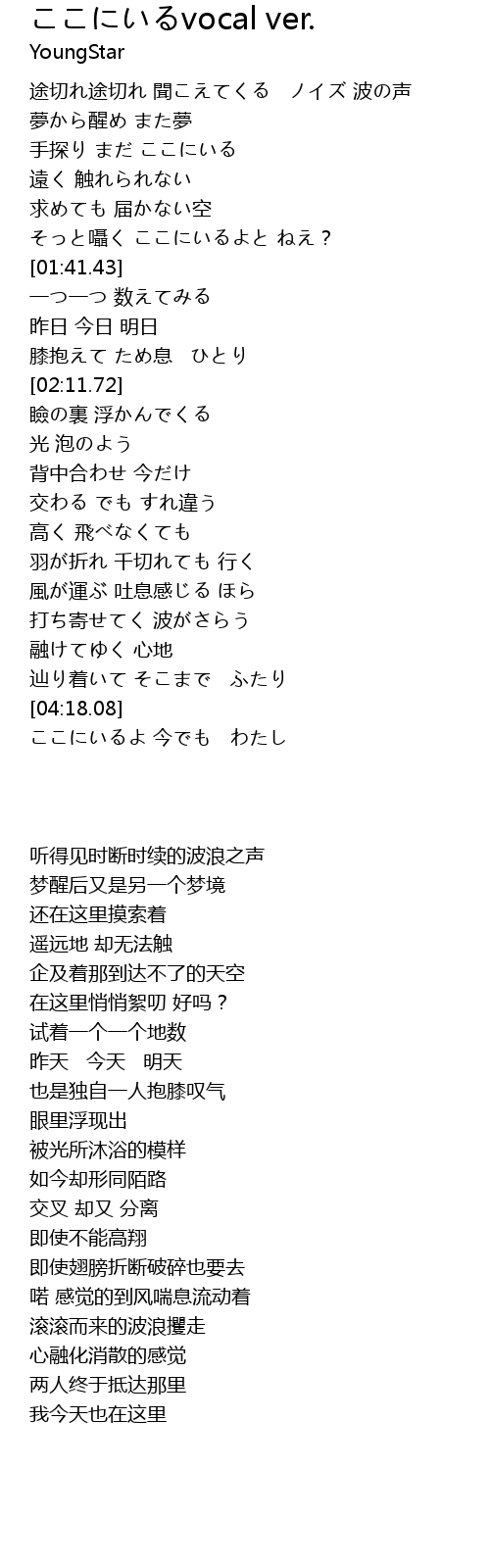 | [04:20.22] | ここにいるよ 今でも わたし |