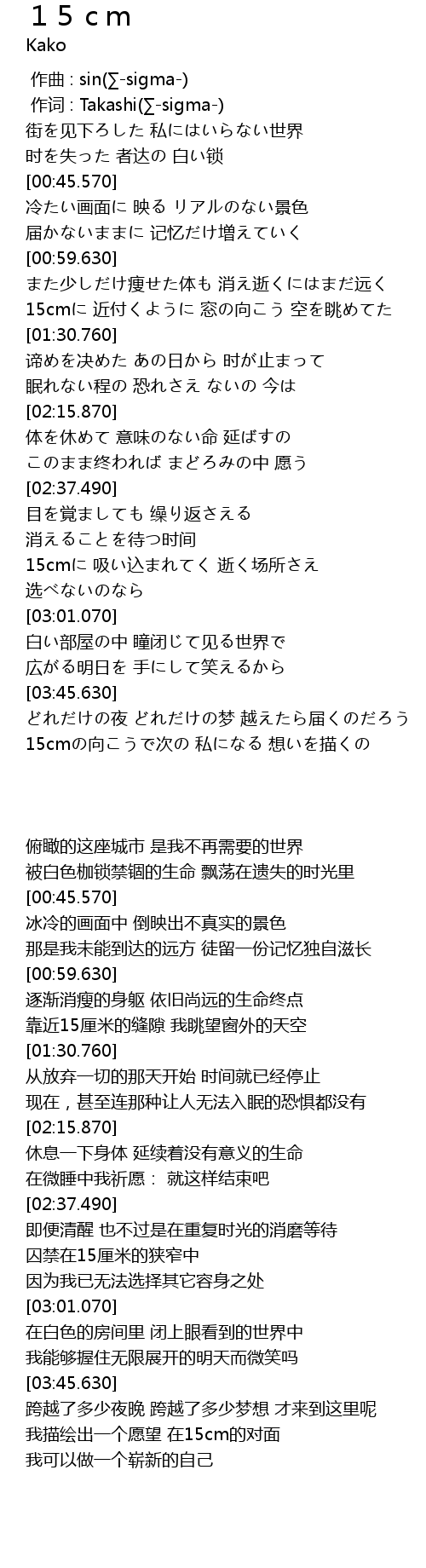 | [02:49.810] | 15cmに 吸い込まれてく 逝く场所さえ 选べないのなら |