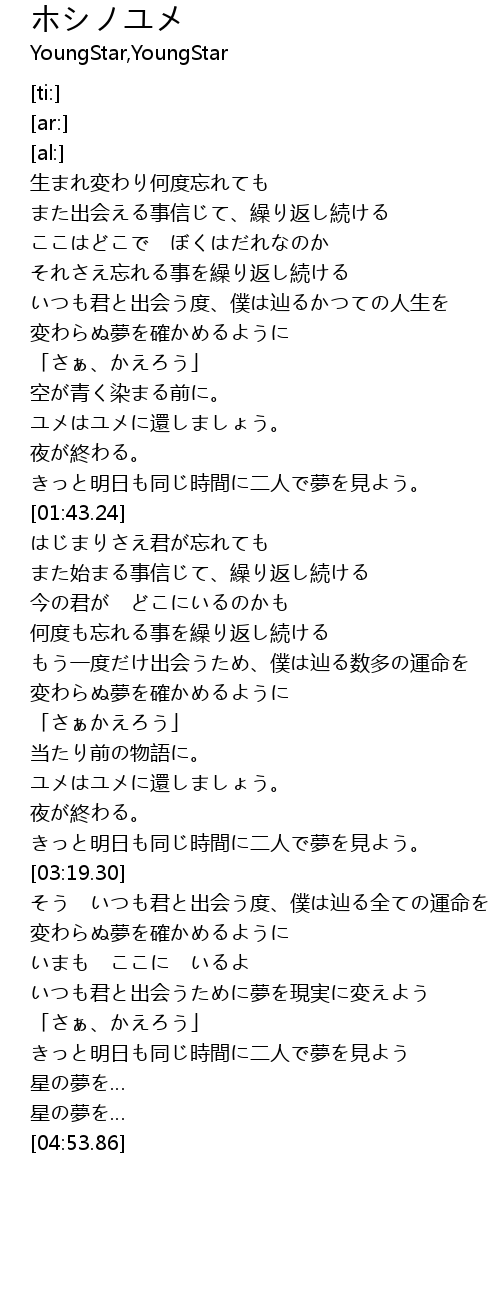 | [04:48.50] | 星の夢を… |