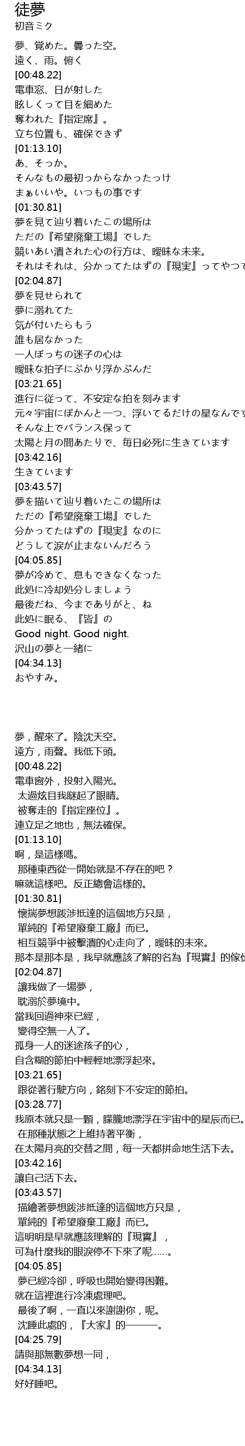 | [01:39.96] | ただの『希望廃棄工場』でした |