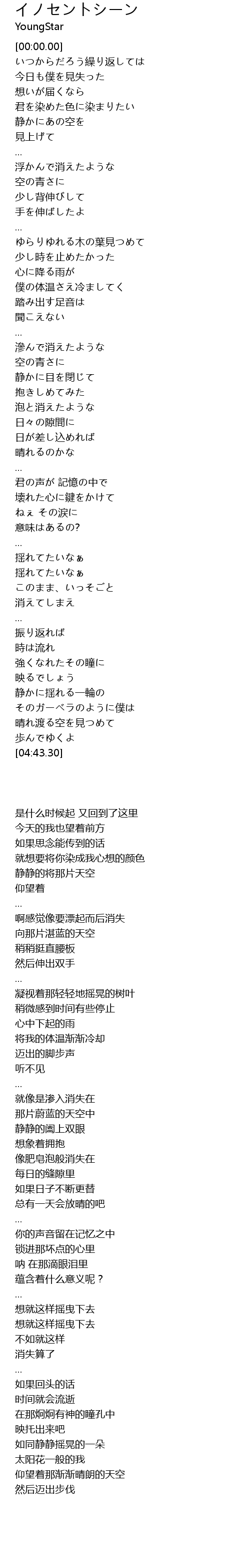 | [04:29.00] | 晴れ渡る空を見つめて |