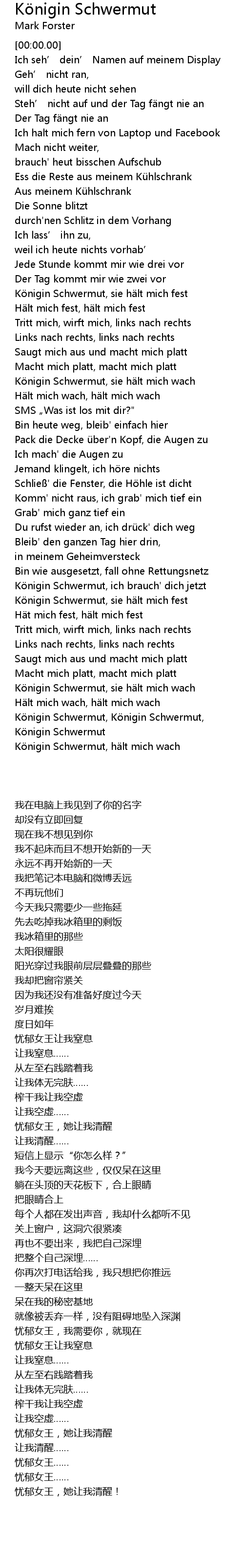 | [00:56.63] | Königin Schwermut, sie hält mich fest |