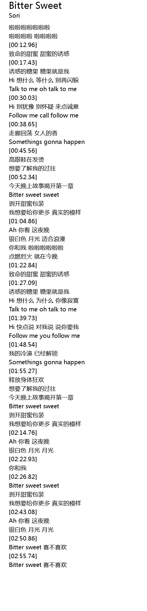 | [02:56.34] | Bitter sweet 喜不喜欢 |
