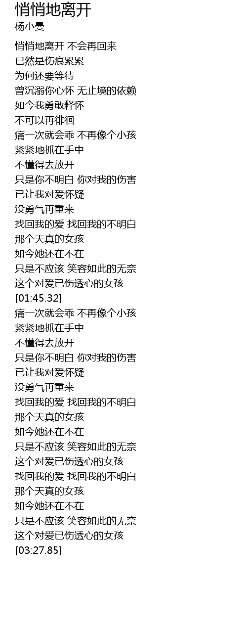 | [00:27.97] | 悄悄地离开 不会再回来 |