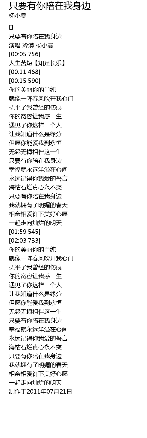 | [00:02.975] | 演唱 冷漠 杨小曼 |