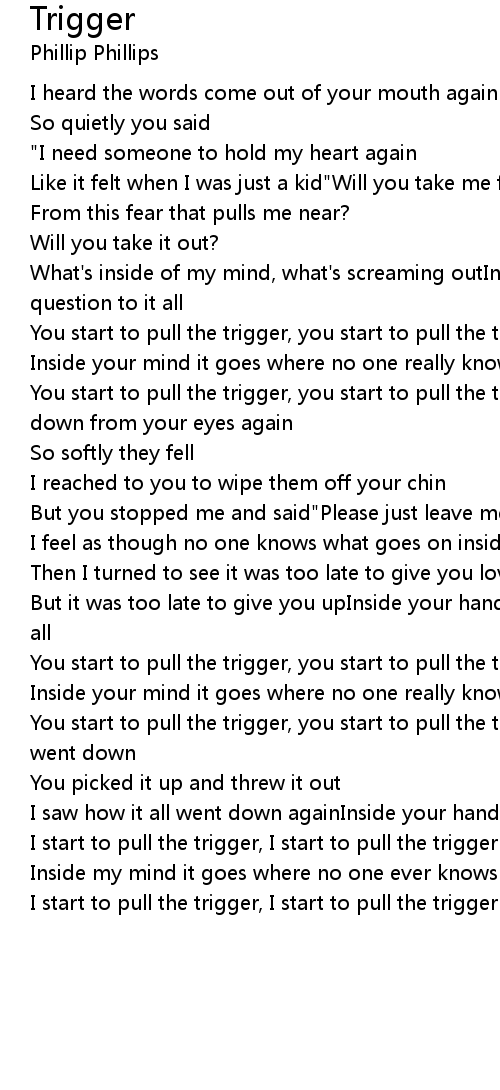 You start to pull the trigger, you start to pull the triggerI saw the tears roll down from your eyes again |