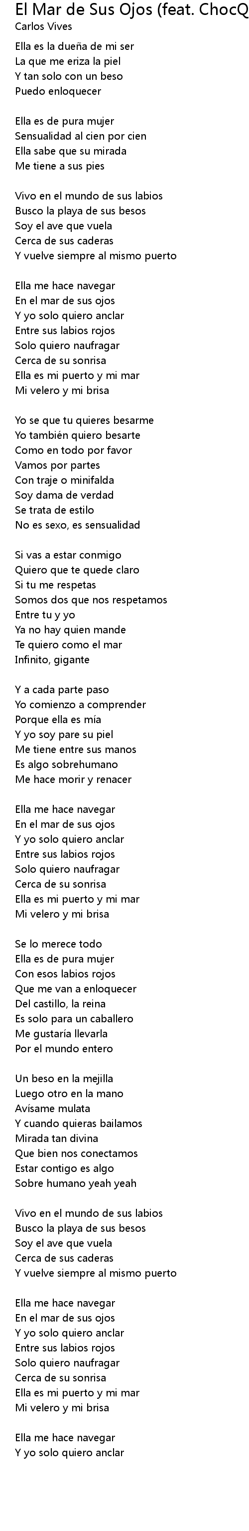 | Song | El Mar de Sus Ojos (feat. ChocQuibTown) |