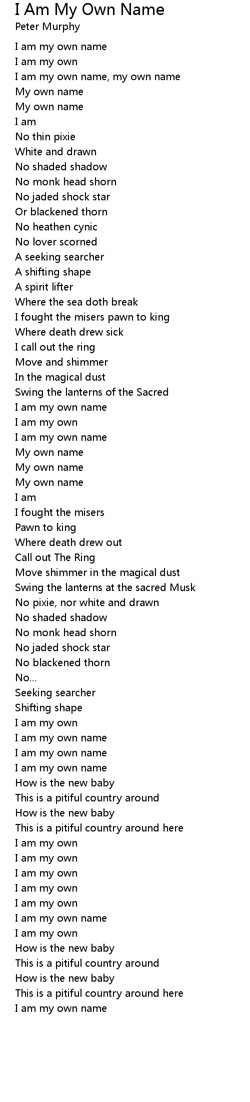 I am my own name, my own name |