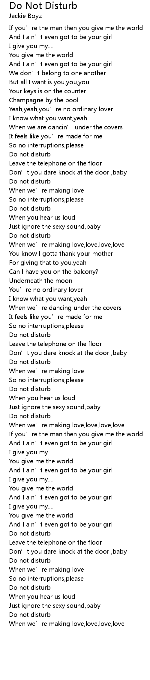 | Song | Do Not Disturb |