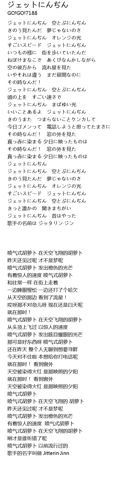 | [04:16.000] | 歌手の名前は ジッタリン·ジン |