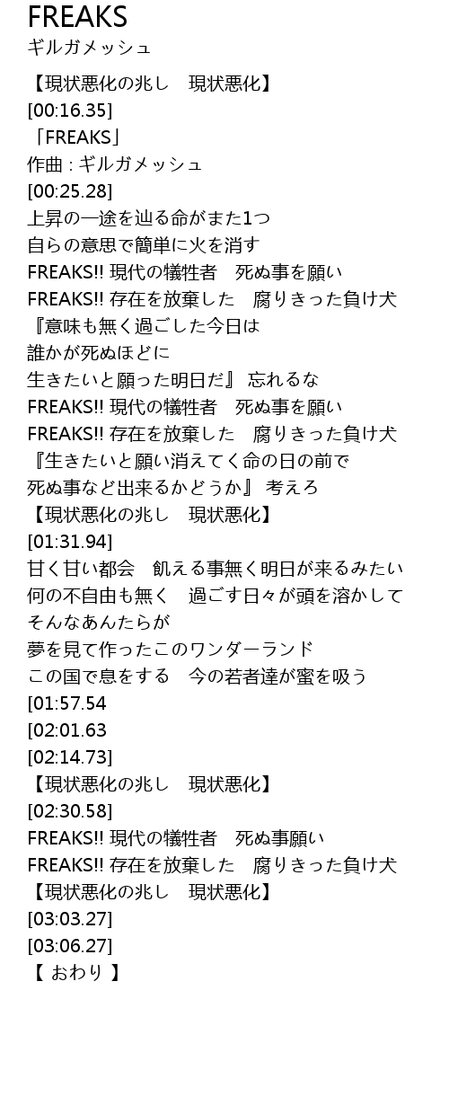 | [02:41.35] | FREAKS!! 現代の犠牲者 死ぬ事願い |
