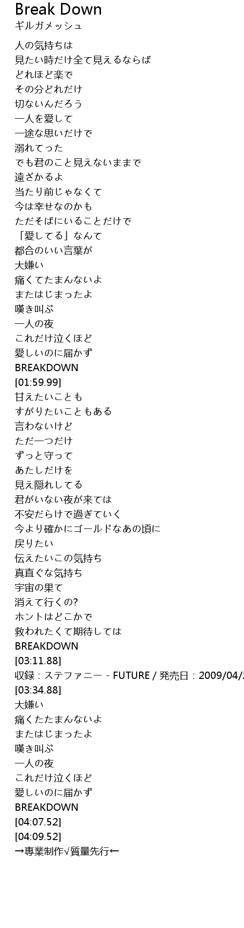 | [03:13.88] | 収録:ステファニー - FUTURE/発売日:2009/04/29 |