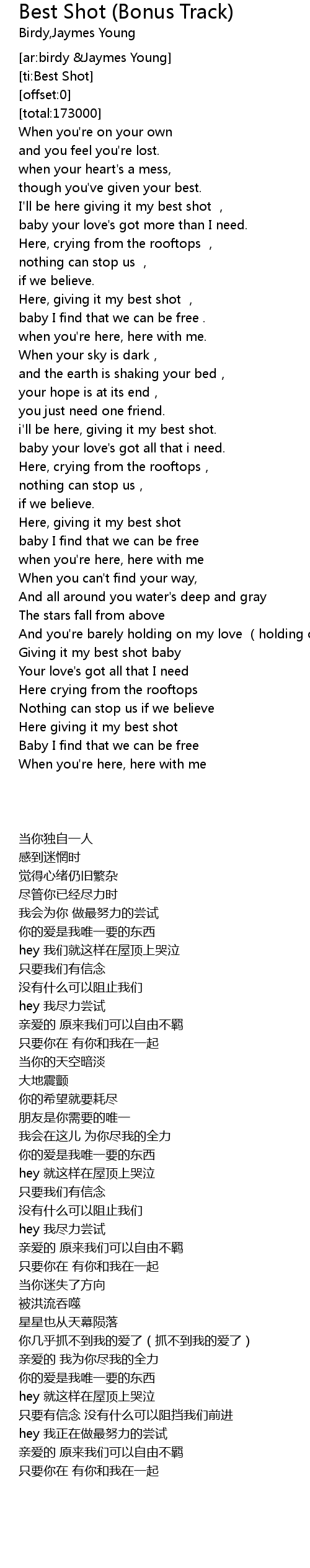 | [02:33.64] | Here giving it my best shot |