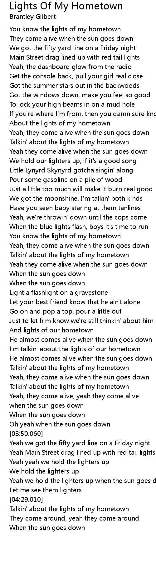 You know the lights of my hometown |