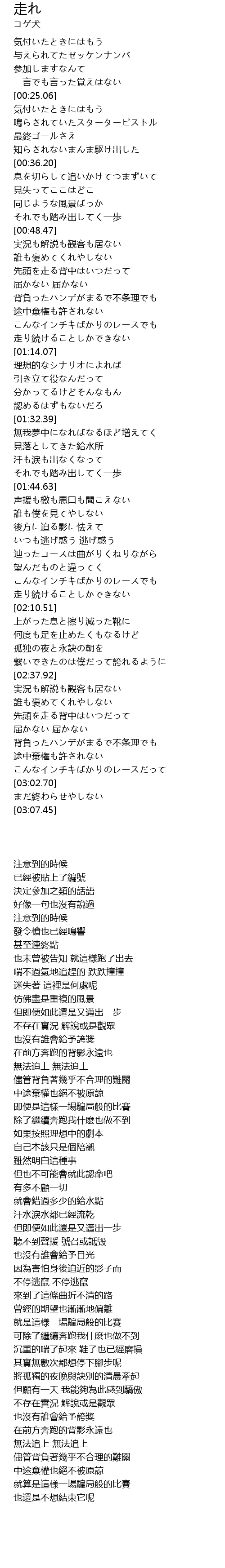 | [01:10.25] | 走り続けることしかできない |