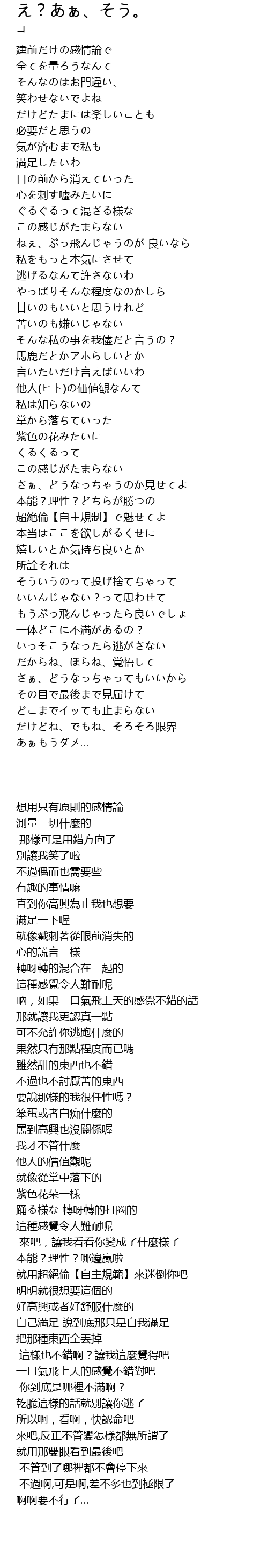 | [01:35.74] | 本能?理性?どちらが勝つの |
