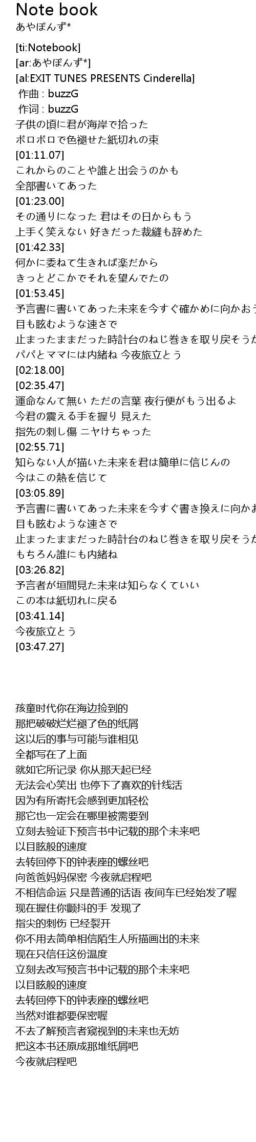 | [01:53.75] | 予言書に書いてあった未来を今すぐ確かめに向かおうか |