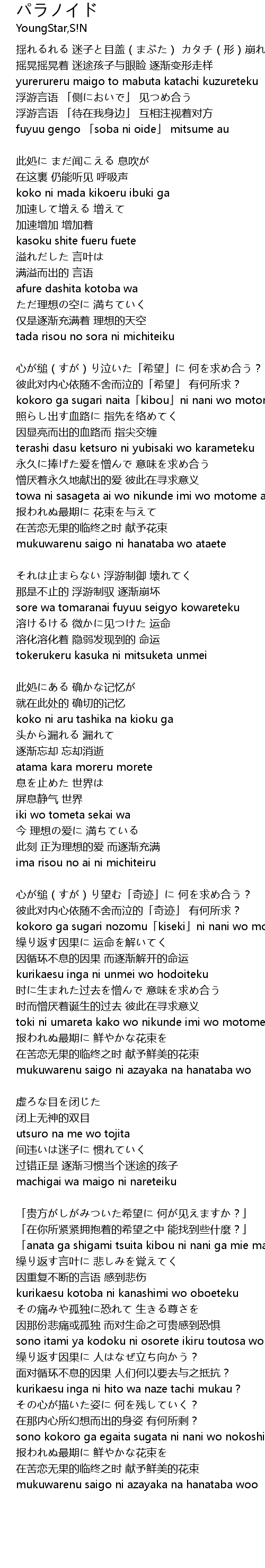 | 时而憎厌着诞生的过去 彼此在寻求意义 | |
