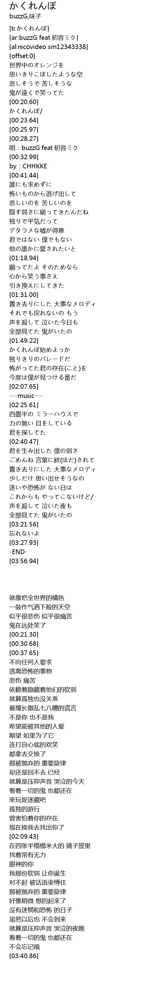 | [00:30.68] | 唄:buzzG feat.初音ミク |