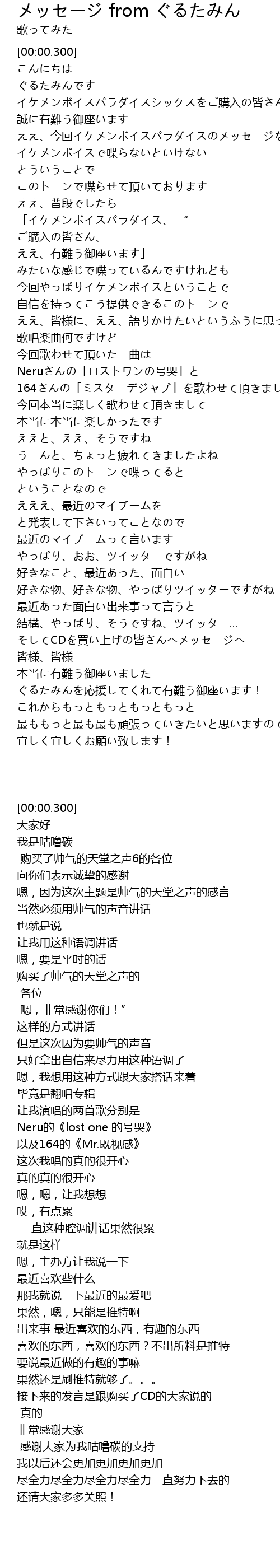 | [01:32.268] | ぐるたみんを応援してくれて有難う御座います! |