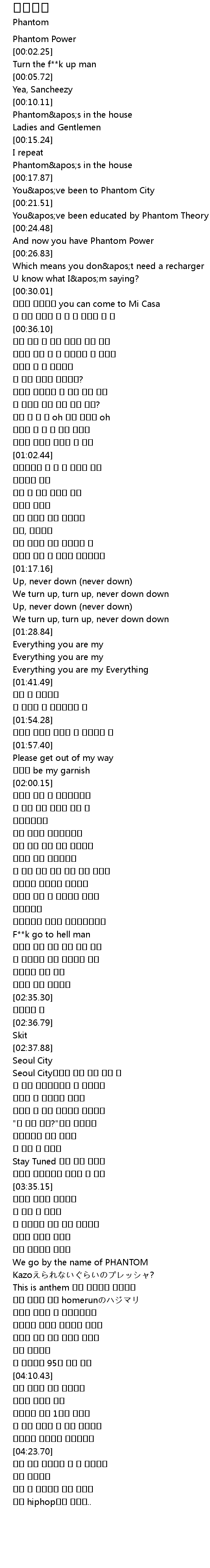 | [01:14.38] | 둘보다 나은 셋 끝까지 팬텀이니까 |