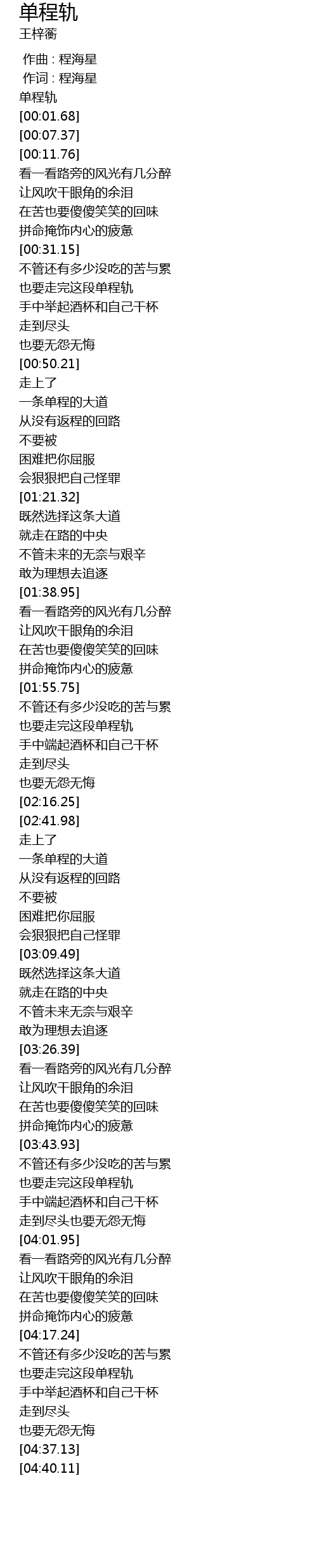 | [04:21.59] | 也要走完这段单程轨 |