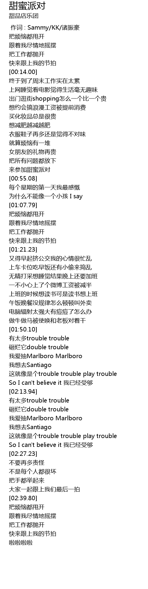 | [02:14.76] | 有太多trouble trouble |