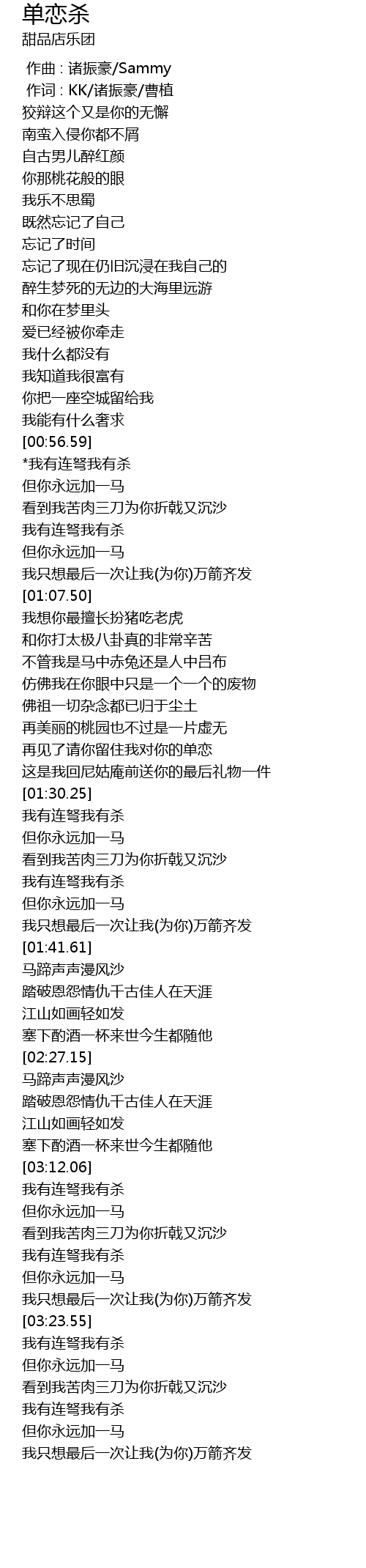 | [00:59.57] | 看到我苦肉三刀为你折戟又沉沙 |