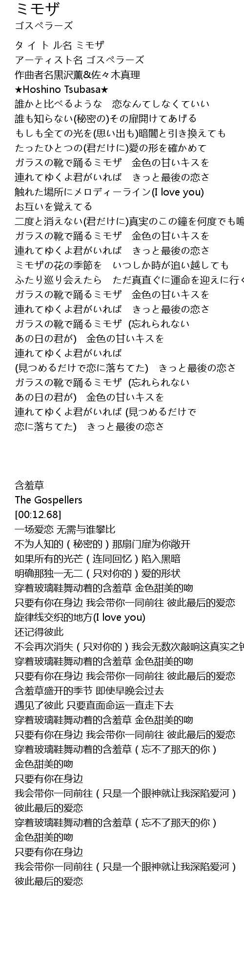 | [00:12.68] | ★Hoshino Tsubasa★ |