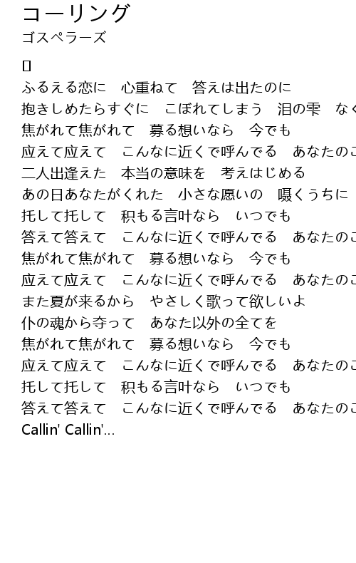 | 答えて答えて こんなに近くで呼んでる あなたのことだけ | |