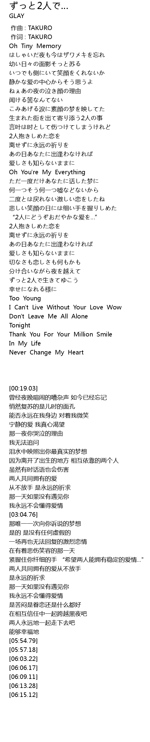 | [00:00.00] | zuo qu : TAKURO |