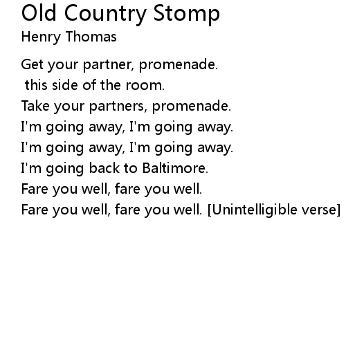 | Song | Old Country Stomp |