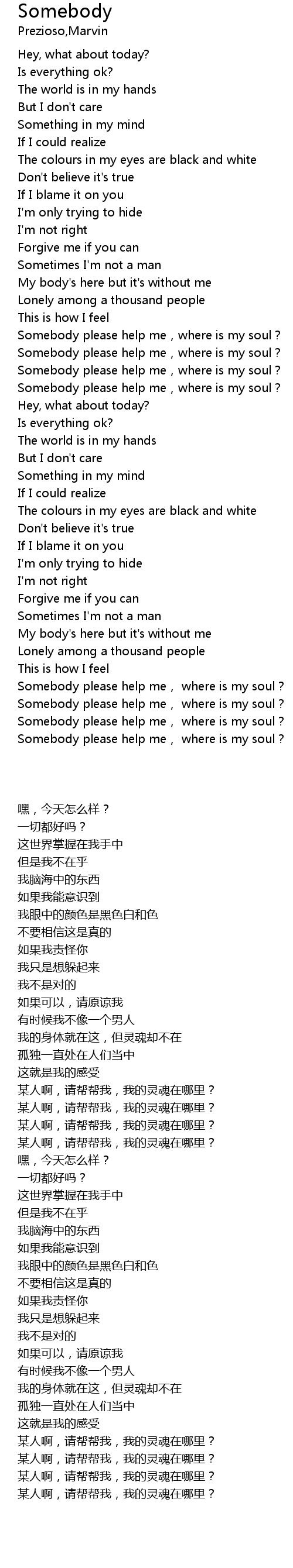 | [02:39.00] | Somebody please help me, where is my soul? |