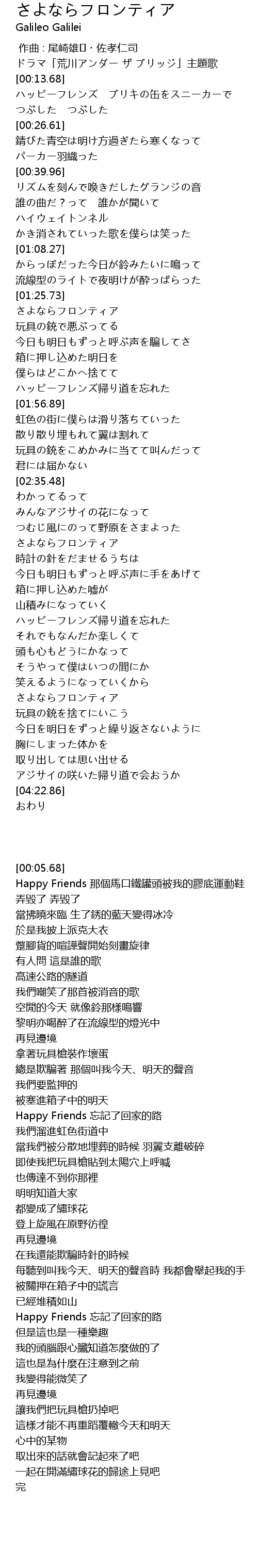 | [01:50.09] | ハッピーフレンズ帰り道を忘れた |