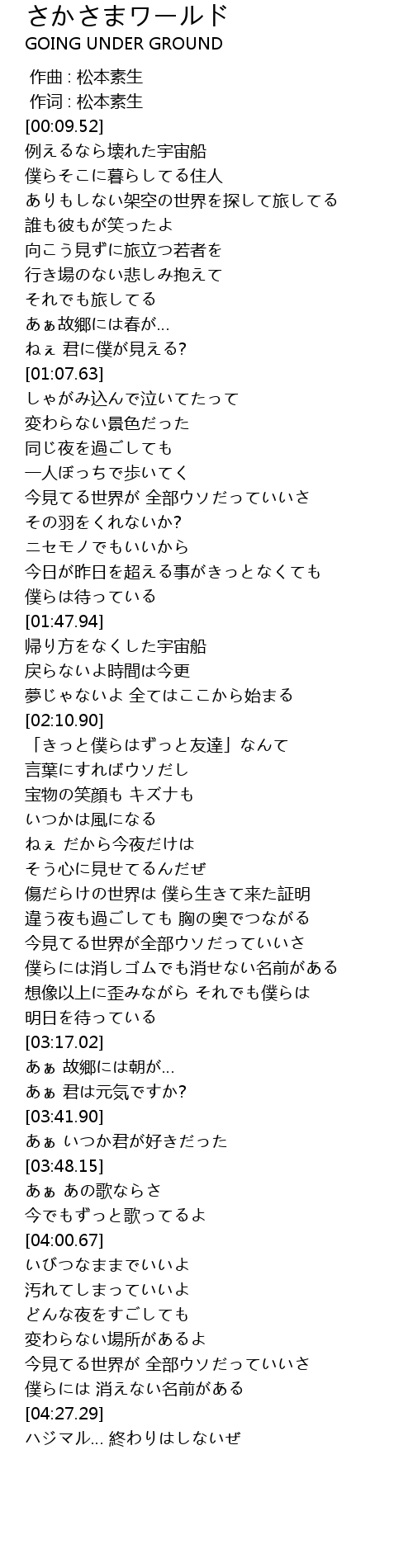 | [00:01.00] | 作词 : 松本素生 |