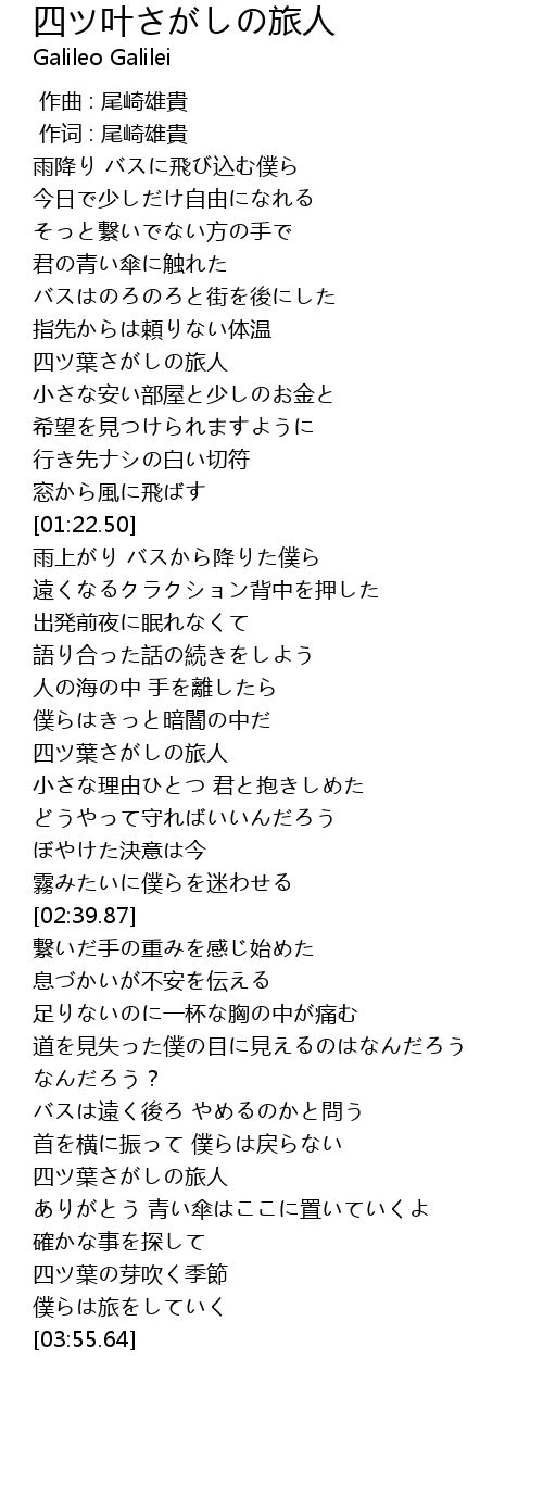 | [02:13.43] | 四ツ葉さがしの旅人 |