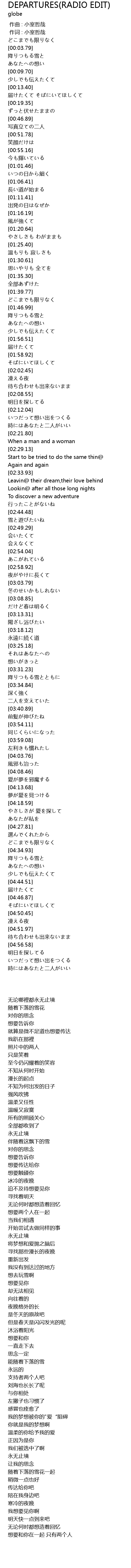 | [00:00.26] | 作词 : 小室哲哉 |