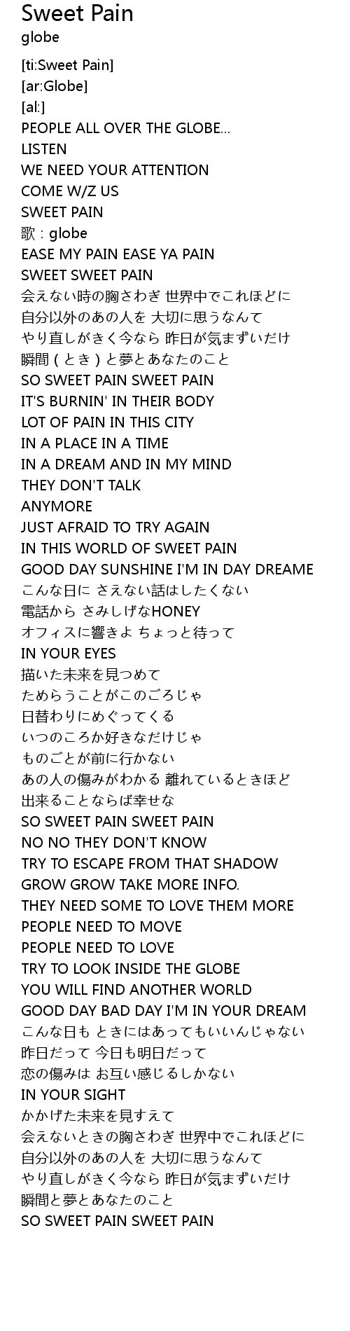 | [01:13.61] | SO SWEET PAIN SWEET PAIN |