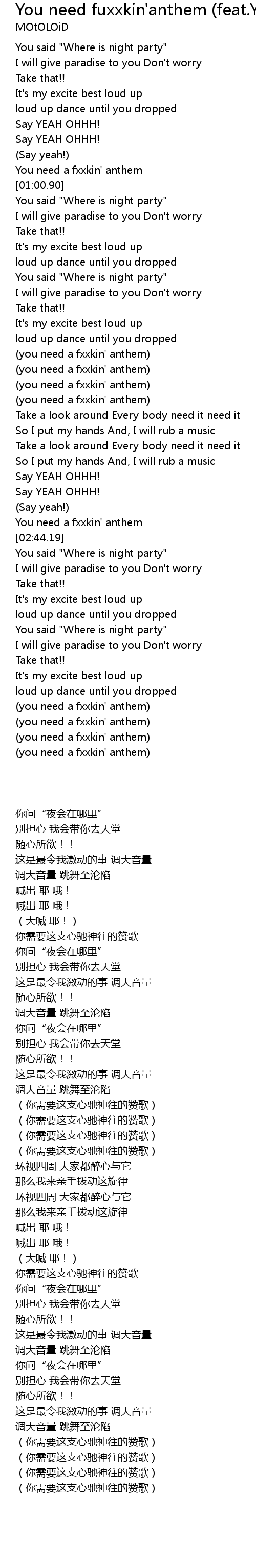 You need fuxxkin'anthem (feat.Yuyoyuppe) Lyrics