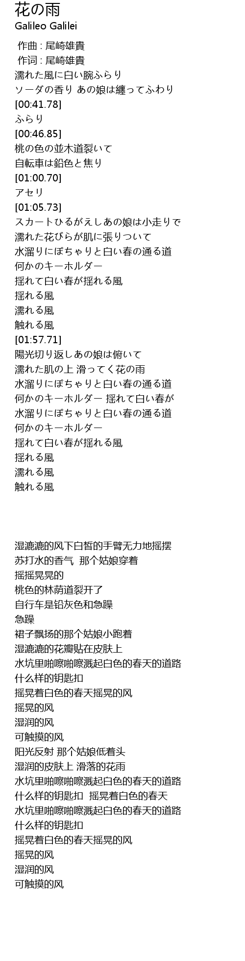 | [02:25.21] | 濡れた肌の上 滑ってく花の雨 |