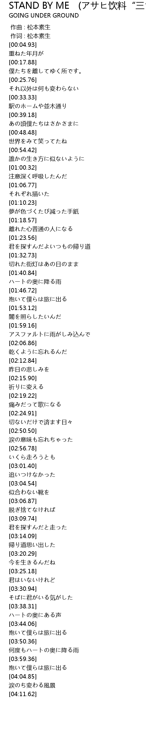 | Song | STAND BY ME (アサヒ饮料“三ツ矢サイダー”CMソング*2005年) |