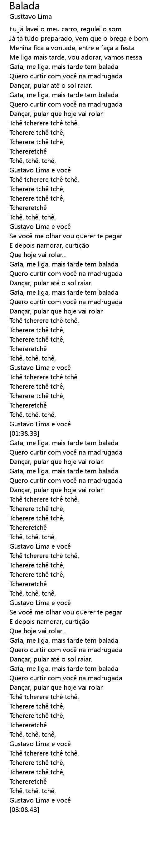 | [02:45.27] | Gata, me liga, mais tarde tem balada |