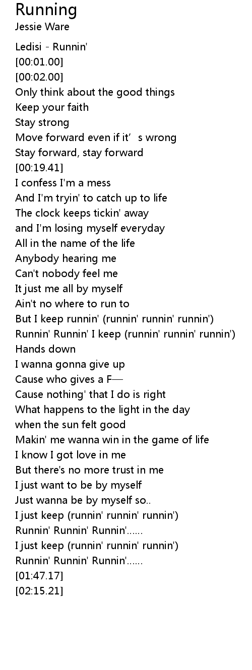 | [00:37.47] | But I keep runnin' (runnin' runnin' runnin') |