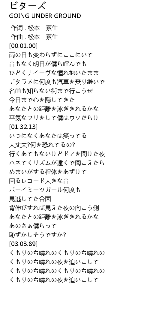 | [02:02:13] | 行くあてもないけどドアを開けた夜 |