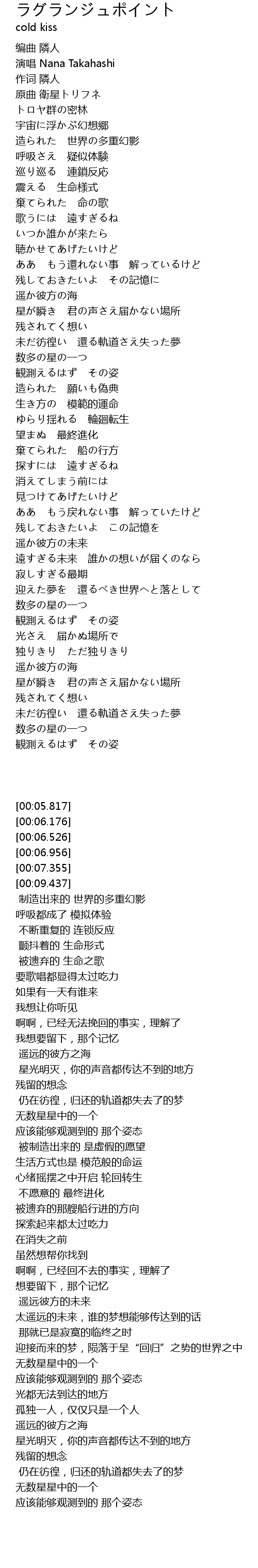 | [00:06.176] | yǎn chàng Nana Takahashi |