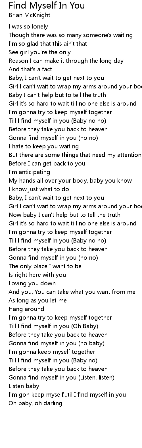 I'm gon keep myself...til I find myself in you |