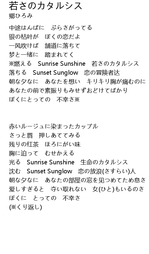 | ※燃える Sunrise Sunshine 若さのカタルシス | |
