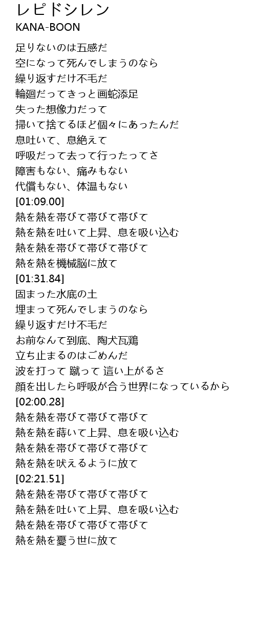 | [01:11.51] | 熱を熱を帯びて帯びて帯びて |